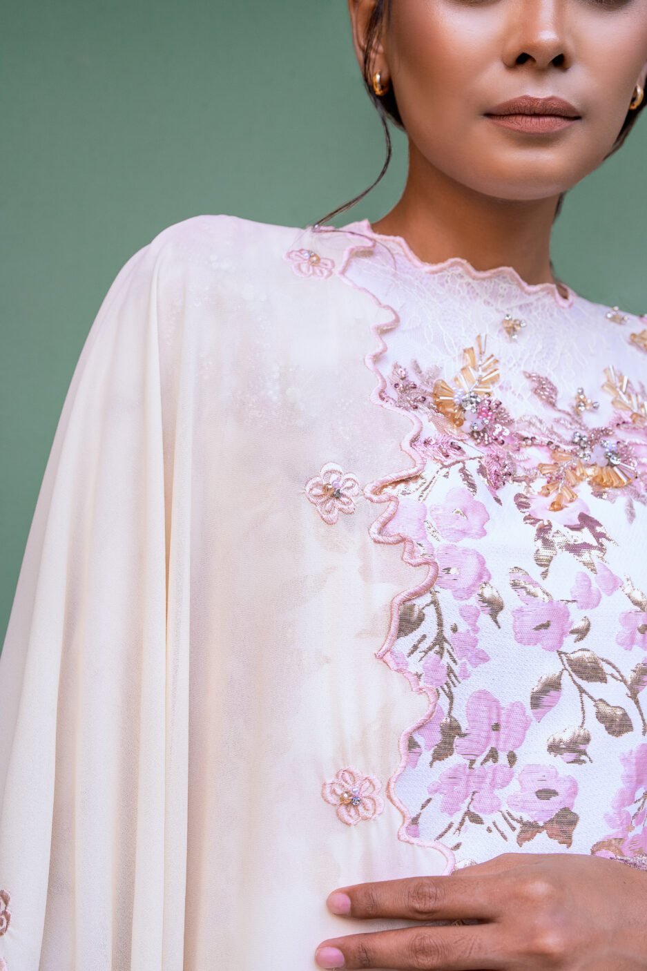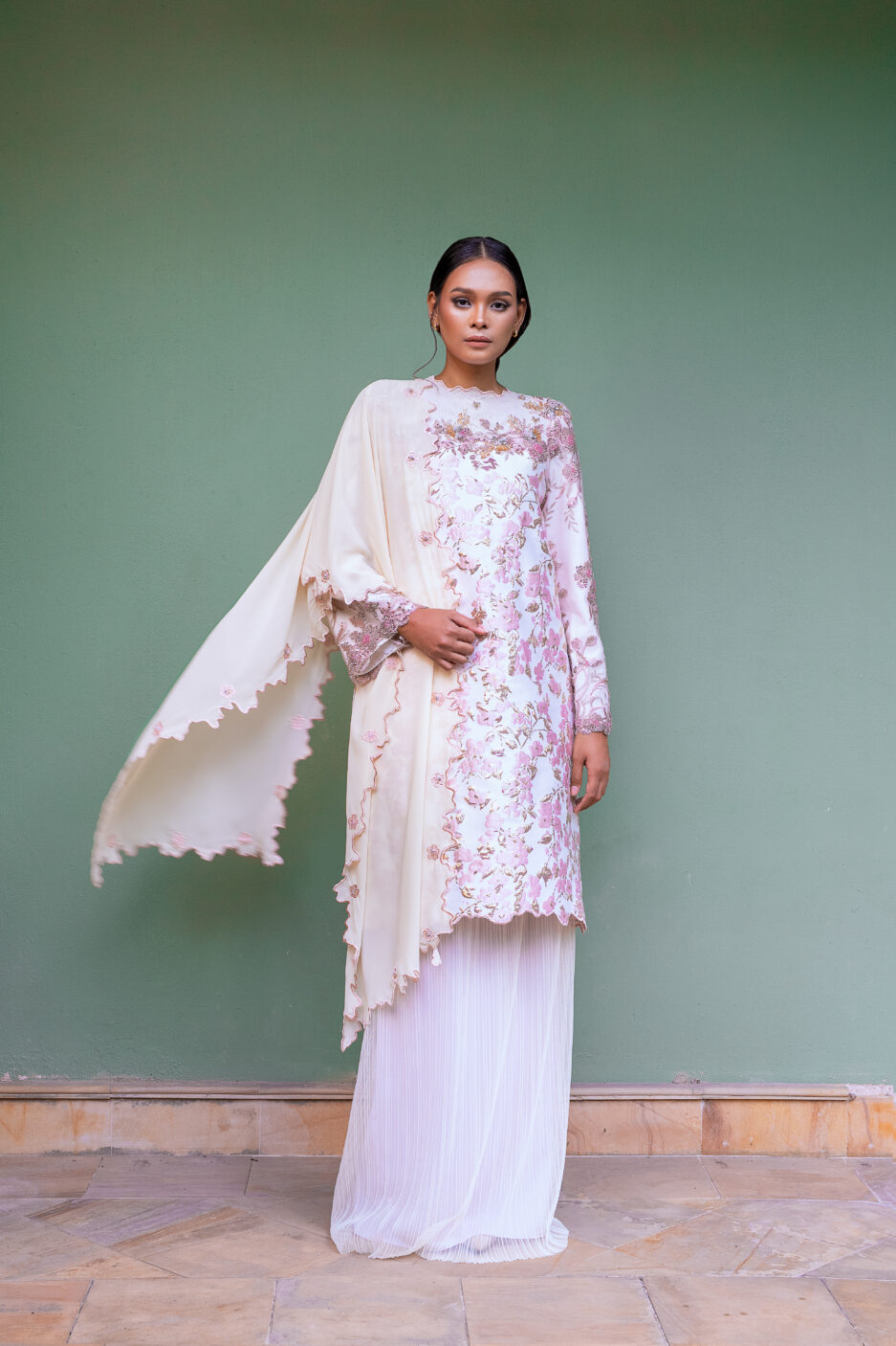 One of our favorites this collection, we love the outcome of Aralyn! This kurung just have it all and you’re getting it at the most affordable price ever. Dropped in pleats and a whole bodice of lace, we inserted a bit of our Temujanji touch with adding on hand beaded work to elevate it even more. Â Have you ever seen such a beautiful kurung as this? We bet you don’t so we encourage you to pick this up before its’ sold out. Comes with a matching shawl for you to style it up or down – personalised it the way you’re comfortable in babies!