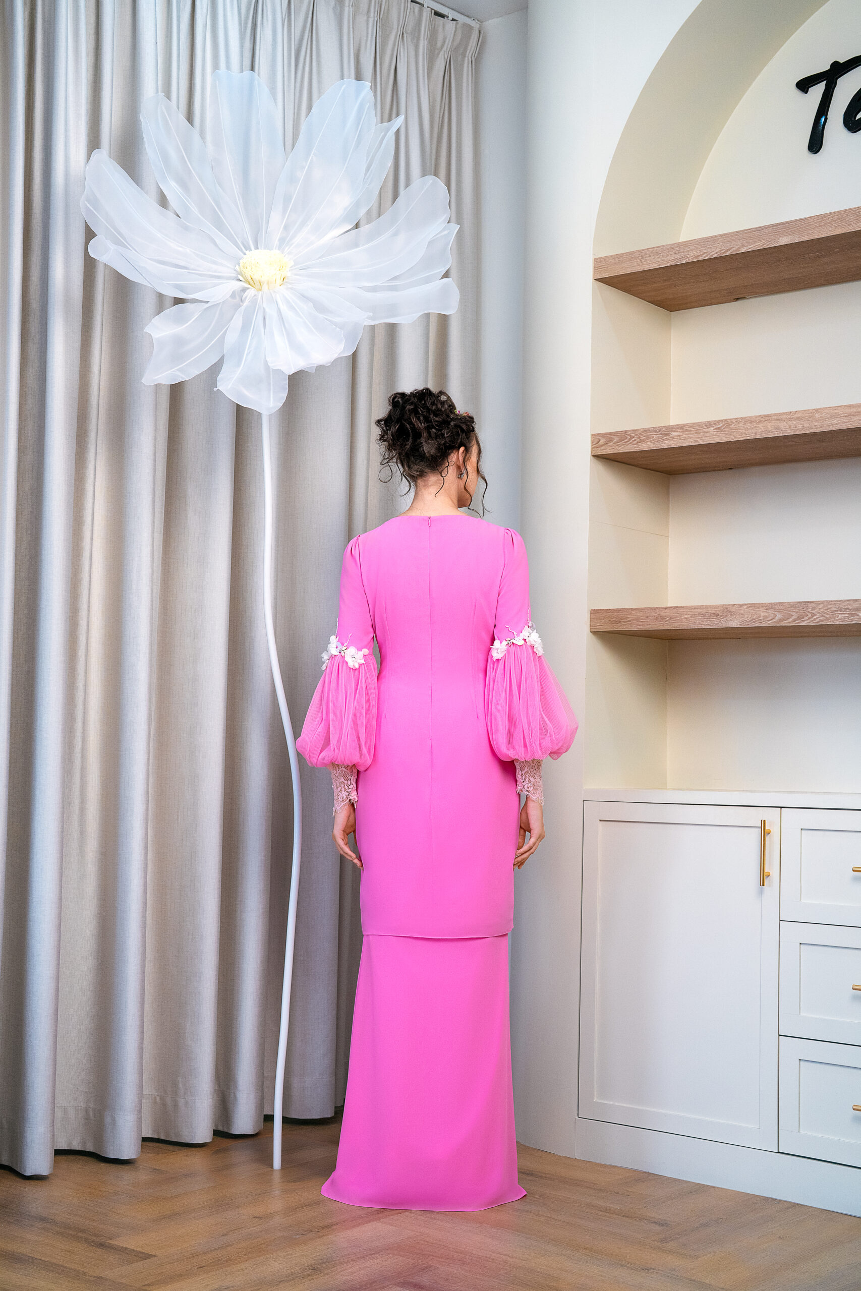 How can you not stare at this and just admire her beauty? Striking we know, but it’s the perfect silhouette that encapsulate our idea of ethereal. Ticking all of the boxes, we assure you that you’ll feel and look demure – clearly this look is not for the faint-hearted, but we insist you to pick this up because everyone needs that one momentous outfit. Needless to say, we try to stay aligned in keeping the dreamy visual, but what’s a Temujanji piece without a little razzle dazzle? This time we incorporate a boat neckline with a play on lace and major dramatic sleeves. If you’re one of the girls that wants to stand out this Raya, we just know what’s the perfect kurung for you!