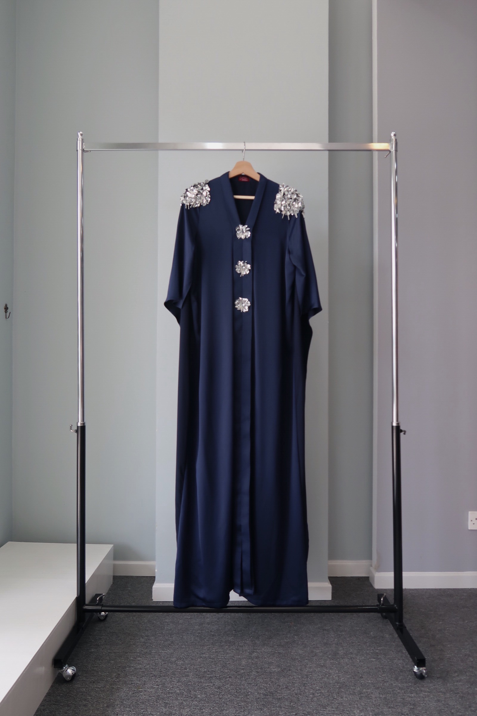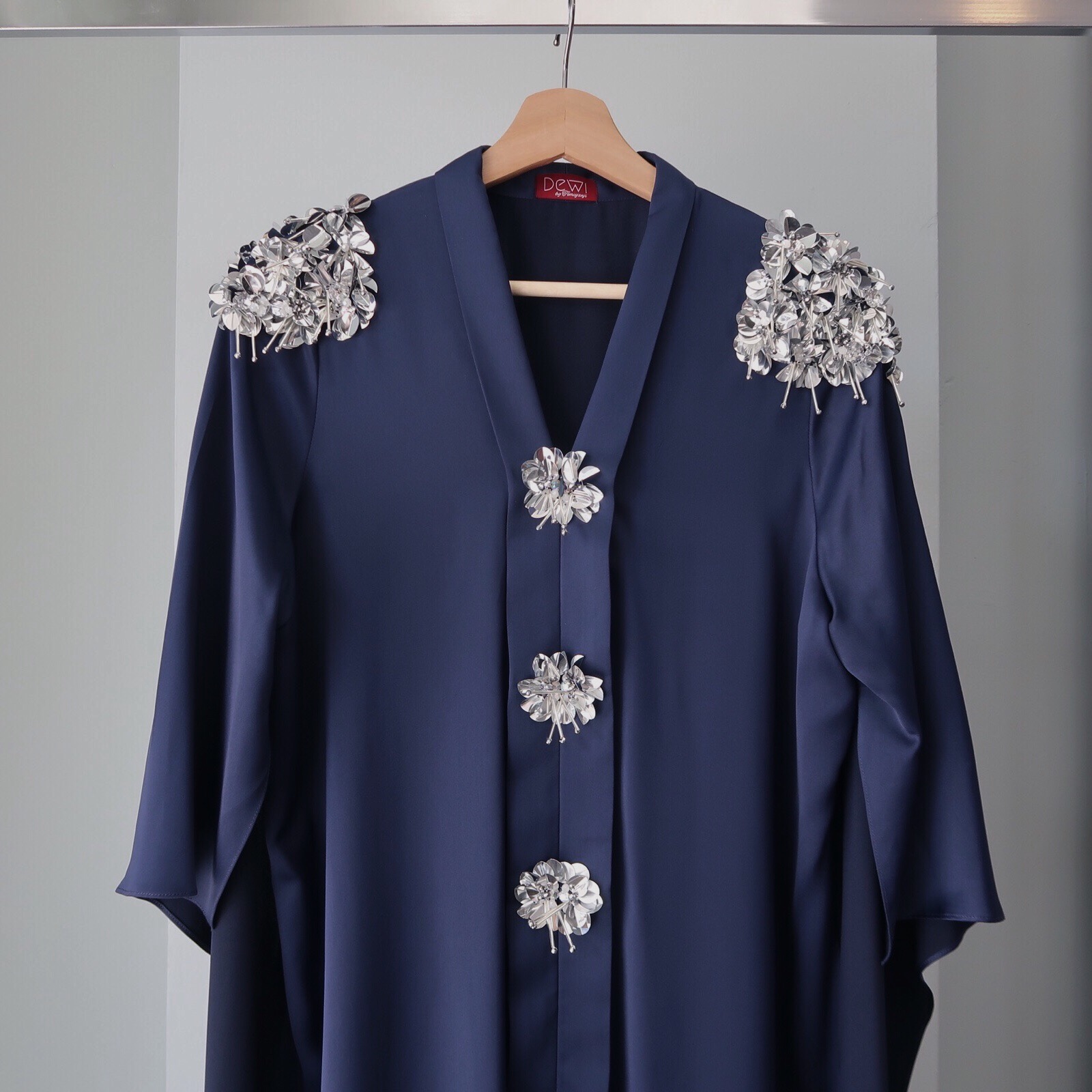 Flowy kebaya kaftan with embellishment on shoulder and front top.
