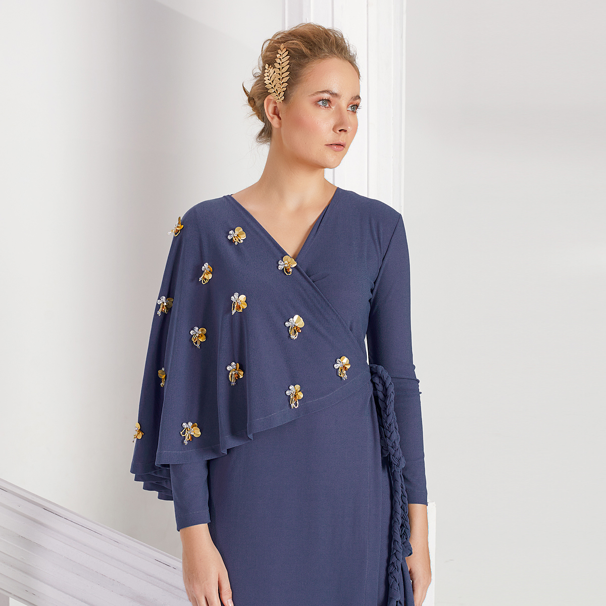 Temujanji finest signature – your favorite wrap dress; Calypso is here for you! The stretchable crepe material used is definitely your holy grail for the next Raya visit – eat up and look on fleek! Be bold and pick up that Raya cuisine as you will still look astonishing. The gold embellishments sewn on to the cape will draw attention to your unfailing beauty and style. Not to mention, have you seen our well-braided wrap rope? Makes you feel like a Greek warrior with a whip; don’t you think so? Become a fearless warrior with Calypso!