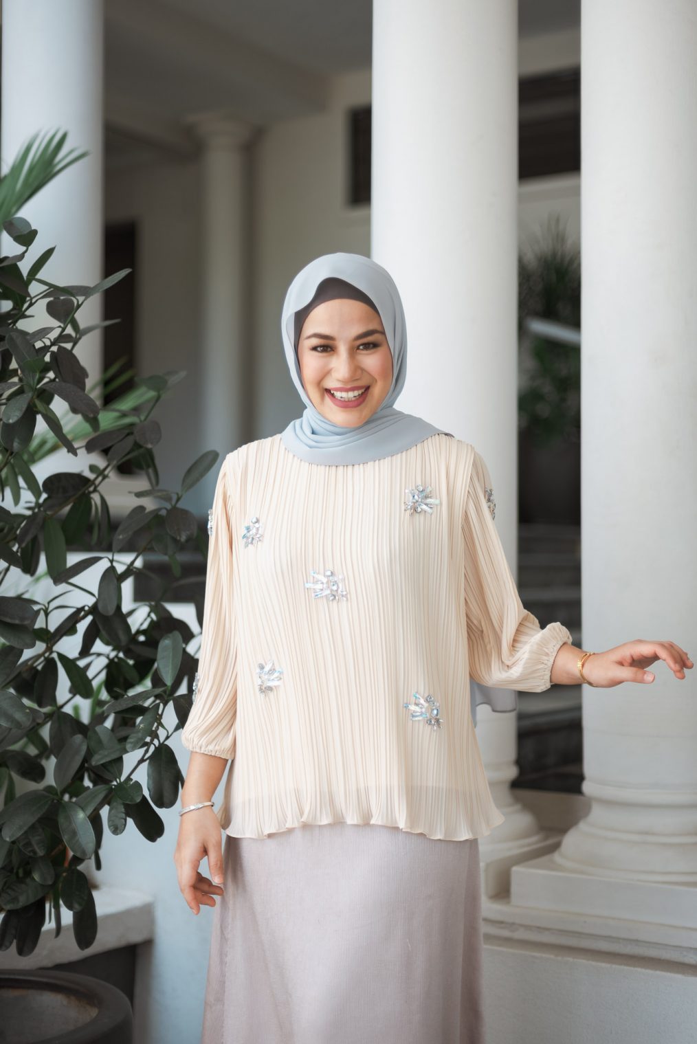 Our Pleta top is up and running with an upgrade! Introducing our Crystal Pleta top with hand sewn crystal embellishments to give you that exclusive sensational look! If you need to look formal but you just want to feel fashionable, grab yourself one of our Crystal Pleta! You won’t regret it! Crystal Pleta’s are now available in various colors for you to choose from! Look flirty and feel beautiful in our pleated Crystal Pleta today!