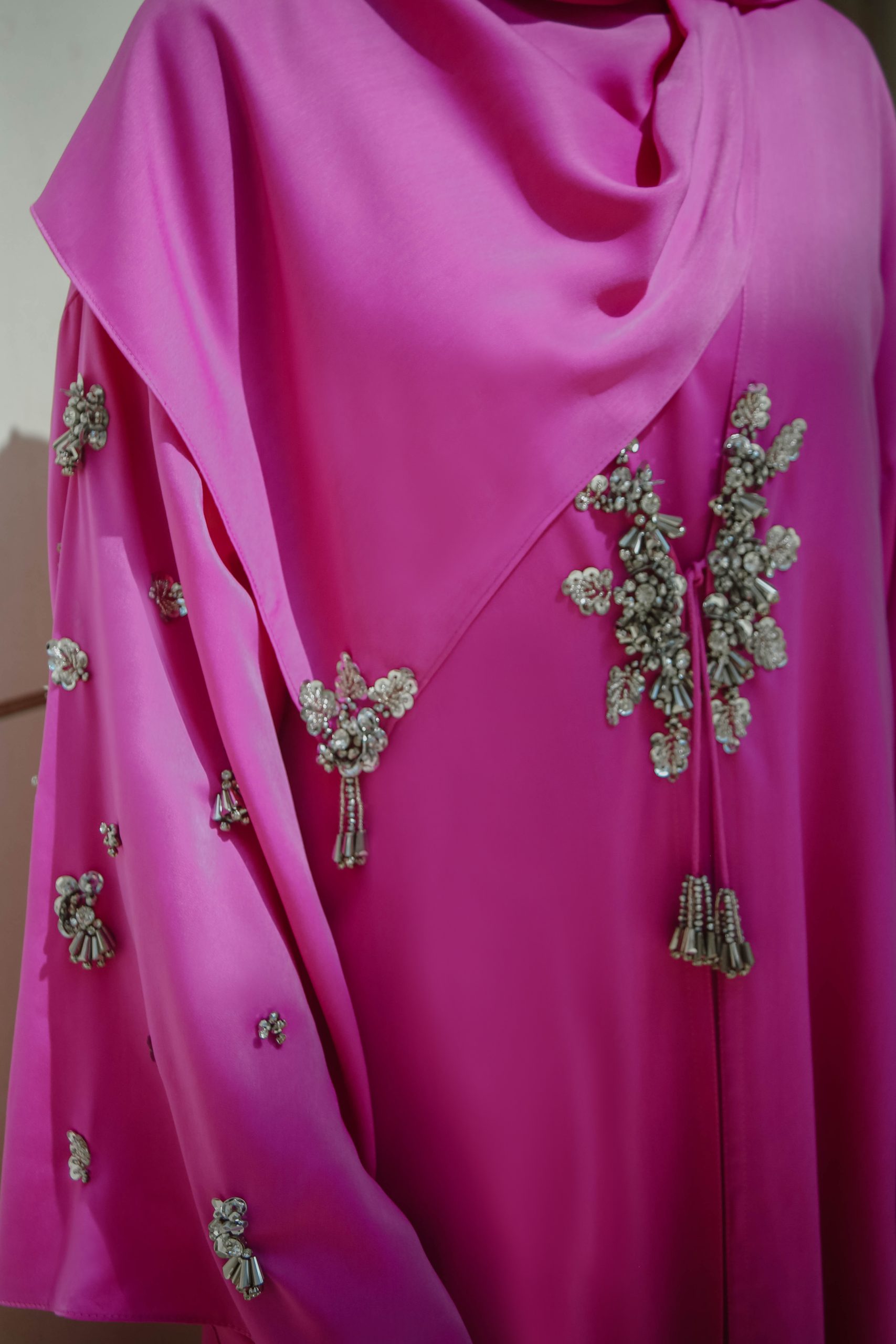 Serene and graceful; our Delaila is an elegant abaya with our most delicate hand bead work ever. Living to its name, we hope you’ll find the need to be delicate with your prayers and goodness in this world. Simply put, we want to bring out the best version of yourself this Raya Haji cum 2023. These abayas are our finest and most diverse collection yet with over 8 colors to choose from! Our main star for this drop is definitely our delicate silver sequinned hand bead works. The intricate details of this abaya is immaculate and you can’t find it elsewhere. Each Delaila abaya comes with a matching shawl instilled with hand bead work as well! How delicate Delaila turns out is how we wished you would personified in reality. Be delicate in everything you do whilst picking up Delaila as your first step!