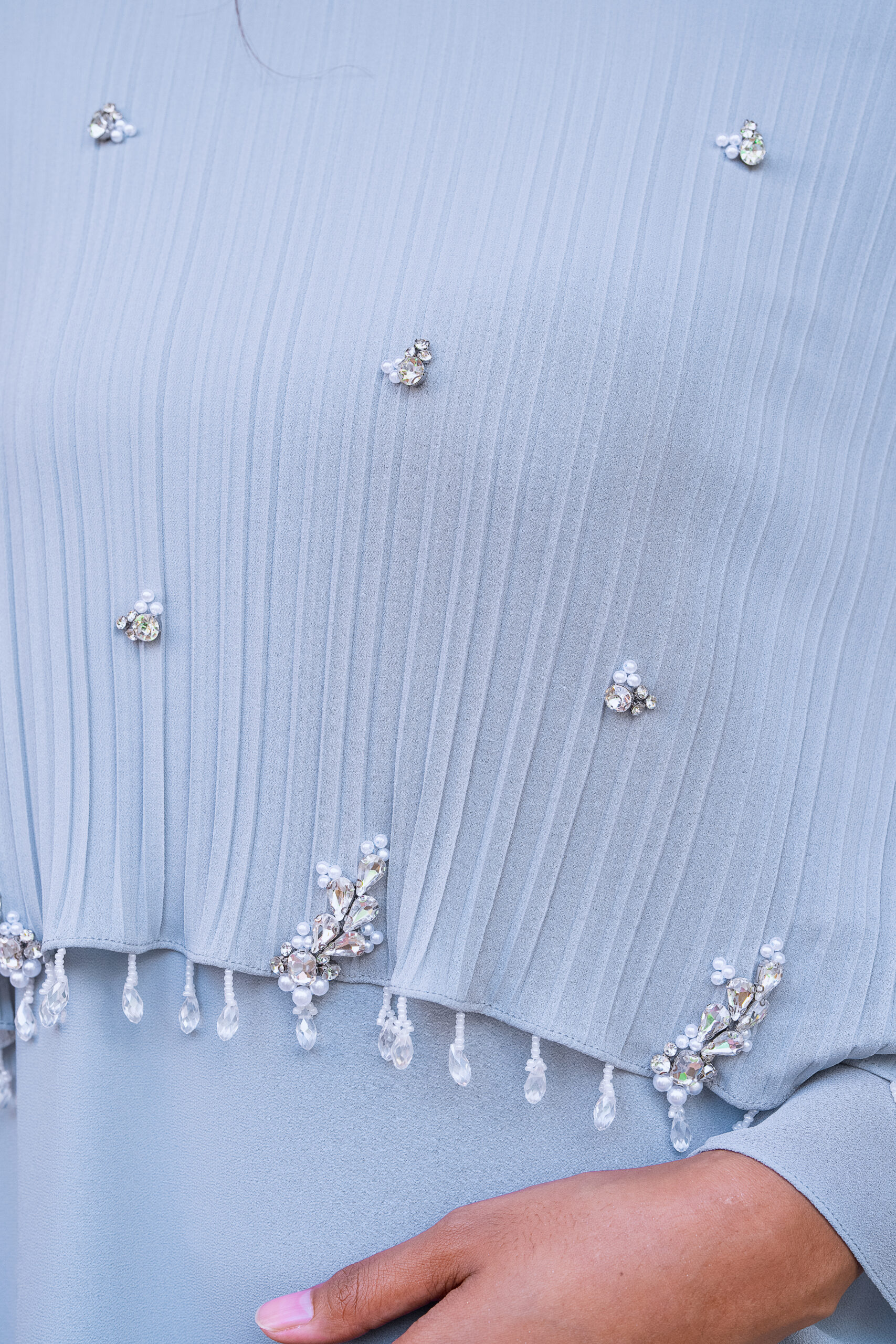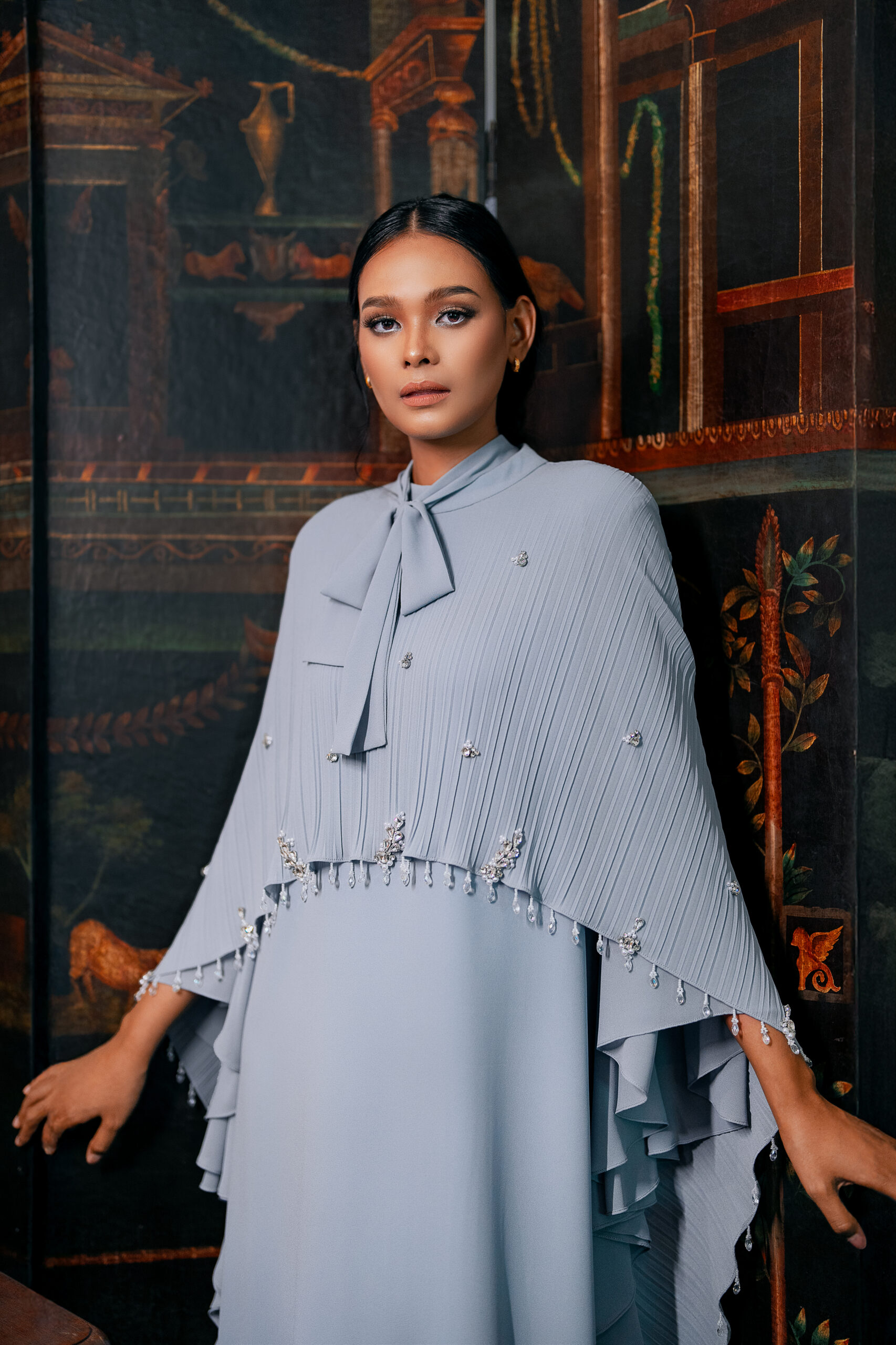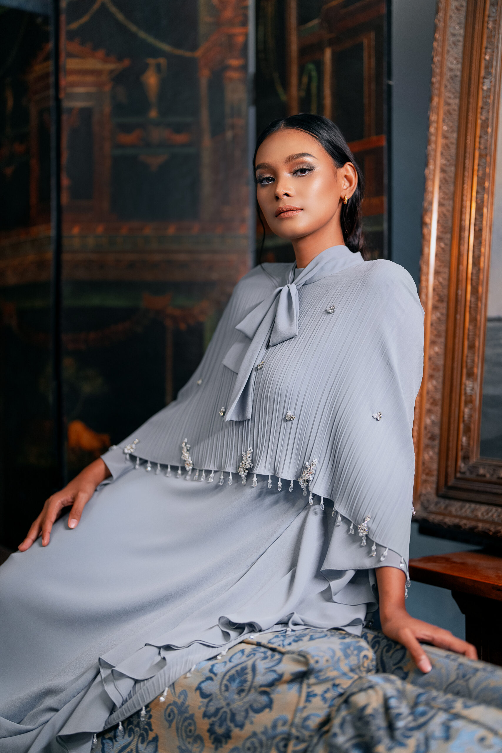 What’s that one piece that ties in our Raya collection every year? If you’re an avid customer of us, you would know that we have to pull up a kaftan design for you! We’re always finding ourselves circling back to our previous pieces and making sure that each time we produce it, we are creating something new and fitting with our signature style. Simplicity is the word we look into and how does this pay respect to our Heritage? This embodies our favourite home outfit – baju kelawar. And well, this is being translated on this piece whereby we glammed  it up with beautiful dangling – hand sewn beadworks! It’s a beautiful take of what’s demure and elegant in our eyes and it definitely scream comfort too. If you loved our kaftans before this, you would definitely want to grab this as well.