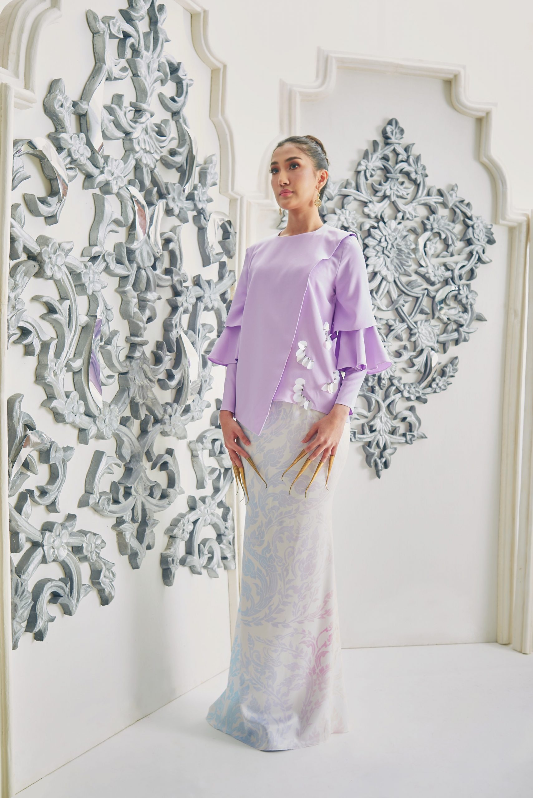 Layers, balloon sleeves and hi-low asymmetrical designs – all three bold designs in one piece? That’s Kara for sure. This is not for the faint-hearted if you are not up for a bold look. Both balloon sleeves has hidden zippers. Hand sewn sequins are inserted to complete the look so that it will keep you looking definite and sweet! Don’t worry about the hue scheme of the skirt girls, linings are inserted! Care to have a Kara in your wardrobe?
