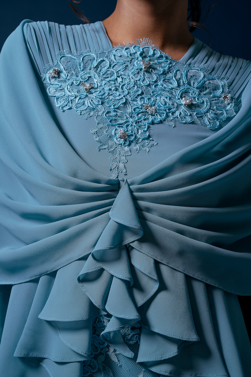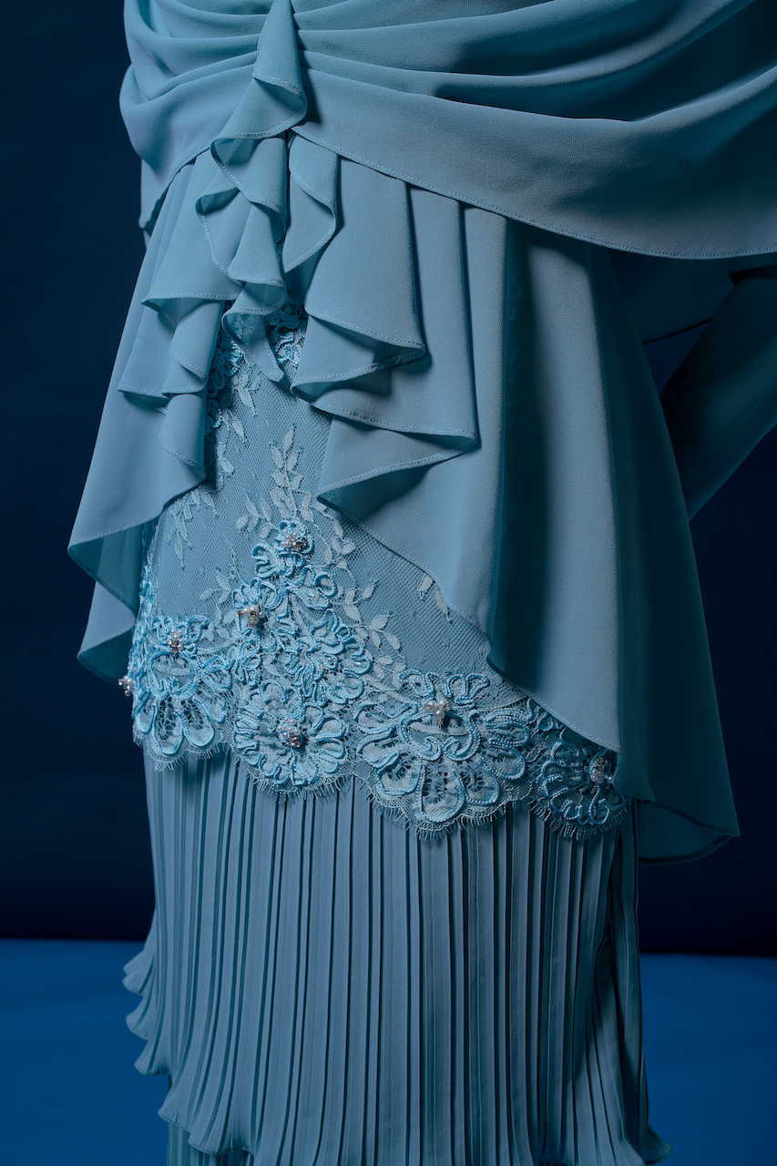 A kurung representing flair and elegancy, this piece must be added into your cart. This is the piece that will give you all the attention you need: a whole regal look for a day out and about visiting your loved ones! Each piece is slathered with a plethora of hand sewn bead works with a matching lace to elevate this piece into another level. Created with layers of chiffon frills and pleats, it would definitely compliment your body well with a hint of sweetness. Available in two pastel hues, this piece brings out the beauty and romance side in you.