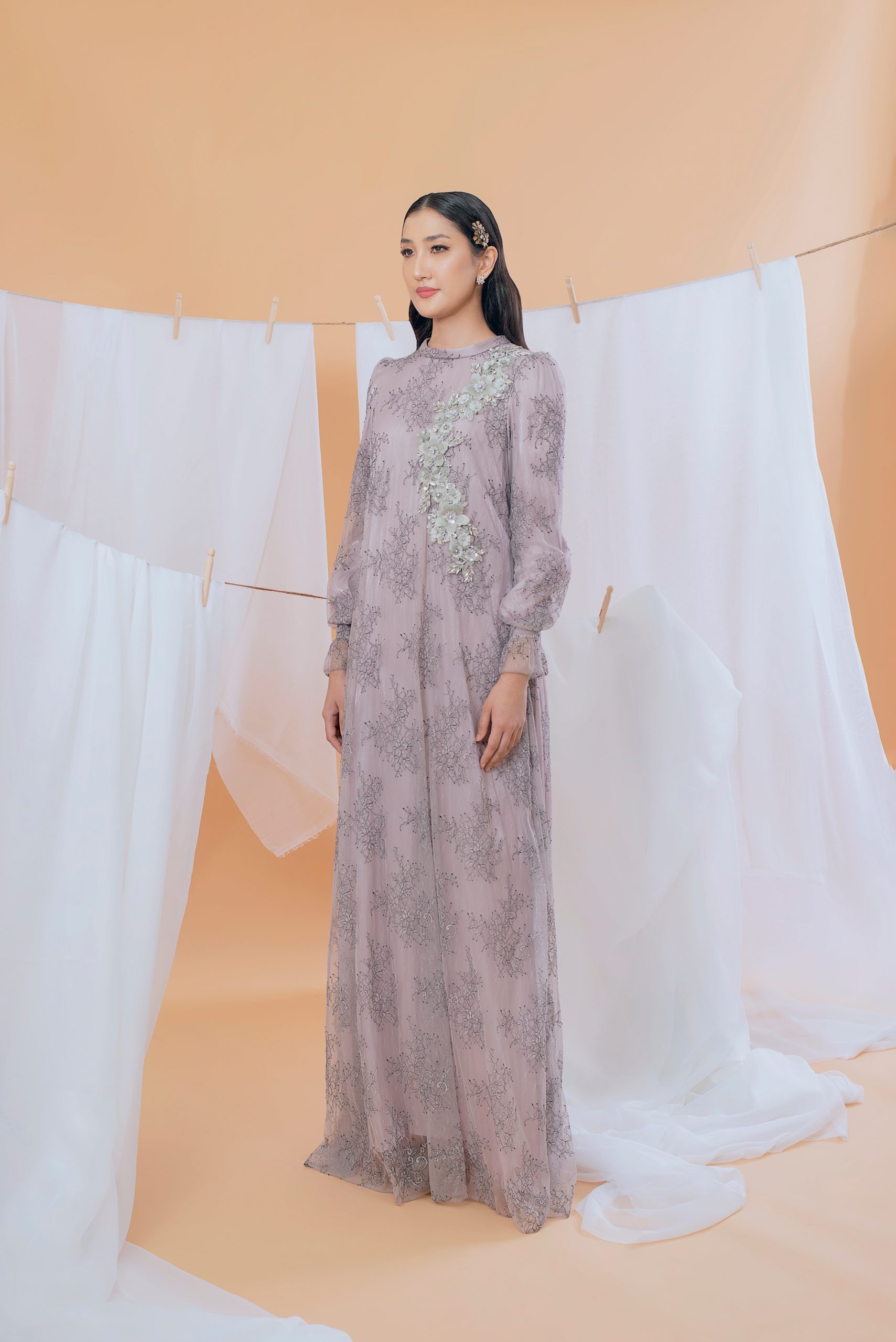 The sweetest, elegant look you’re getting this Raya 2021 from us, our Ramadhani kaftan is here! Gathering cottage core vibes, our pastel colours combination with this beautiful work of lace is simply breathtaking. What screams Malaysian about this piece is the intricate embroidered flowers on it! Don’t it just reminded you of the pieces back in the olden days where there are big 3D flowers popping? Well, this Ramadhani piece is made to relive that again but instead in a more modern and elegant manner. With its breathable material, it feels like you’re wearing your sweatsuits at home. Awe your audience this Raya with Ramadhani, she’s a keeper.