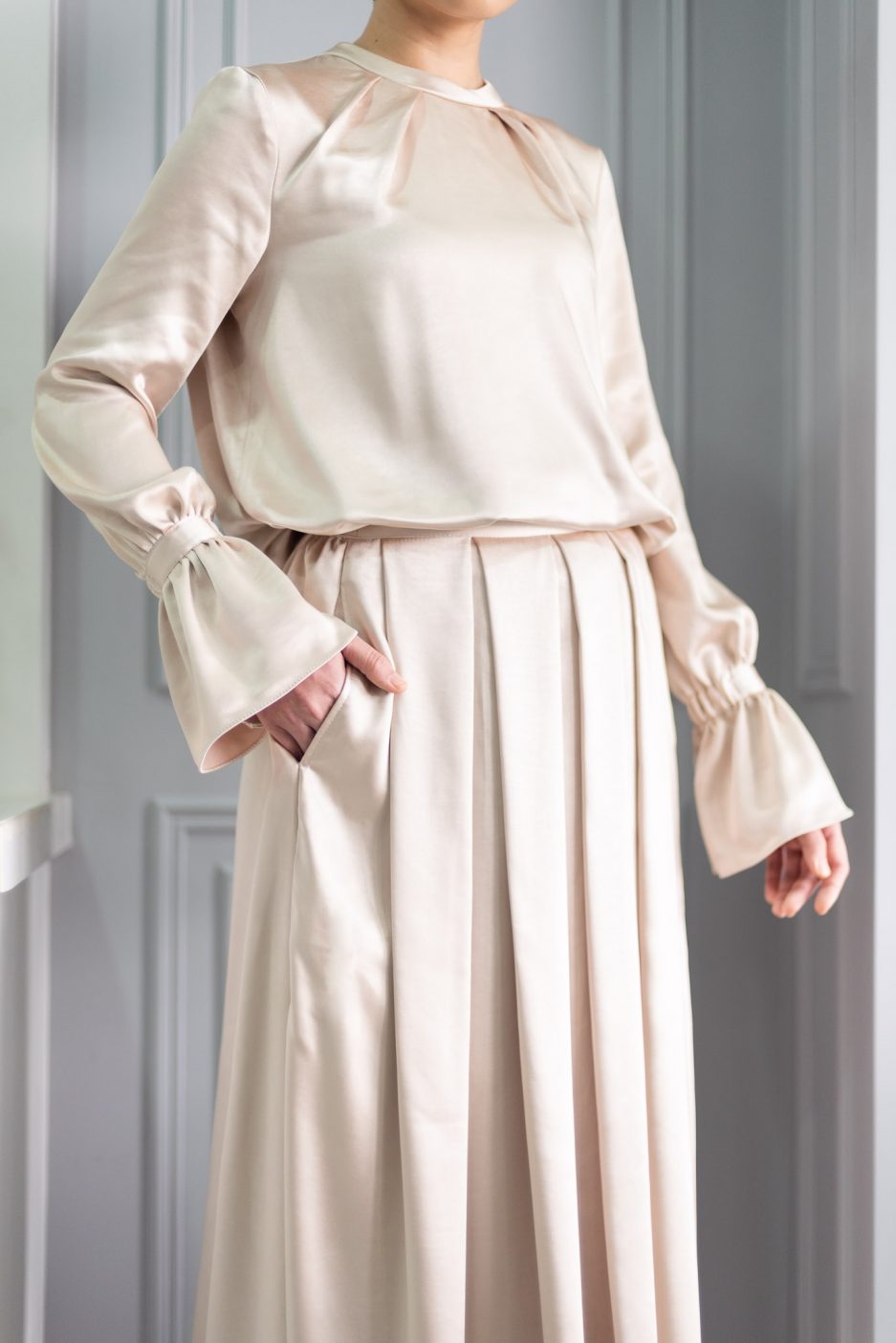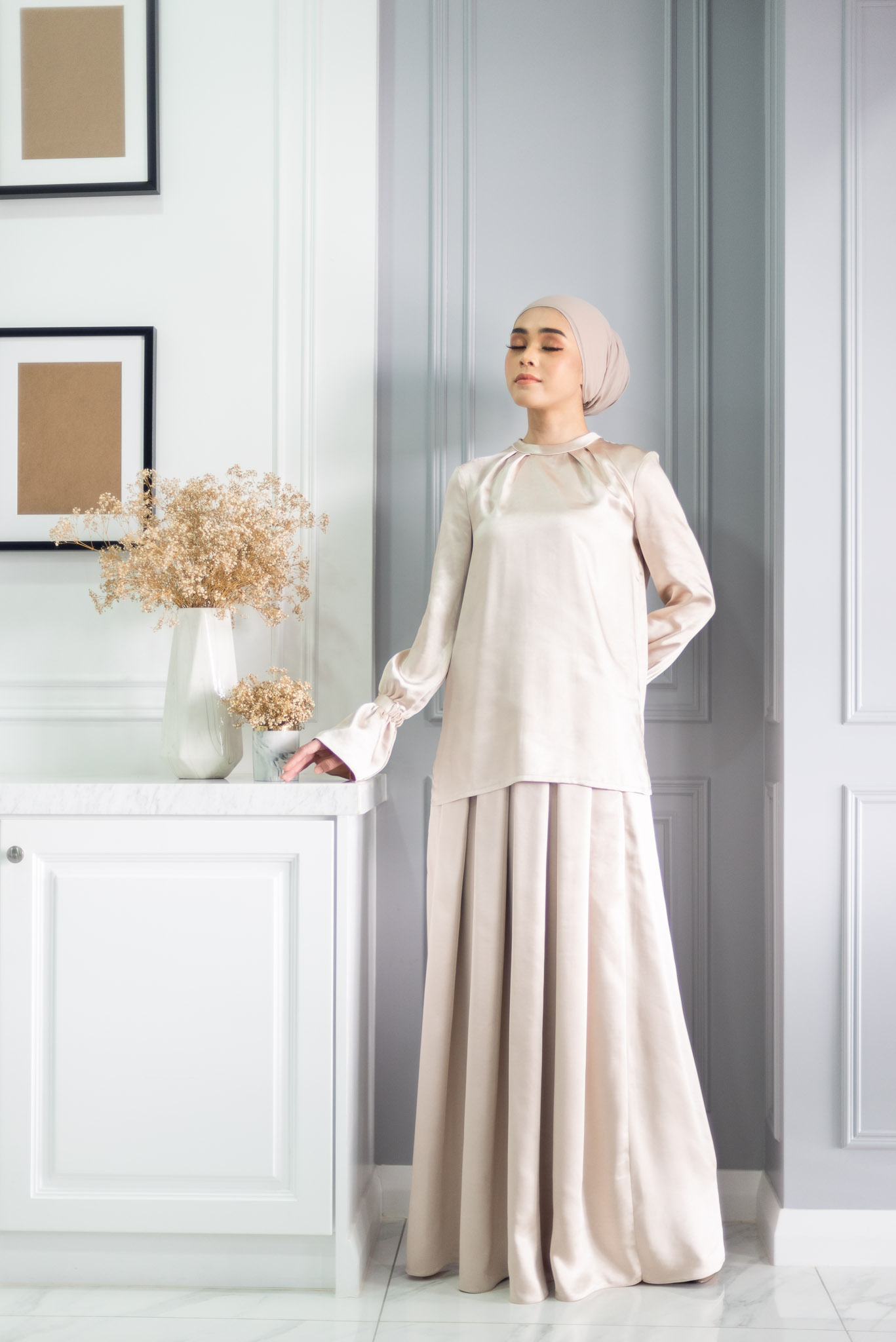 Curated to fit the transitions in this current life period, we’ve elevated our aesthetics to fit the different phase or levels of transitions. Be it coming back to work after fully exhausting your time on the computer screen, becoming a full time mother in this pandemic or turning over a new leaf spiritually, our Sarah top and Edyra skirt is made to help you develop that confidence for that new beginnings in life. Made with heavily dull satin, keeping into our minimalist aesthetics, it’s the silkiest piece ever made which is comfortable for any lifestyle. Loosely made and comes in two separate sizes of XS/S and M/L. An elastic band on the wrist is instilled whilst covering enough skin to run your errands. Deep pockets sewn on the skirt for easy access of your must have items. Length for both pieces are muslim friendly. An elevated look with a hint of edginess, it serves extensive purposes as you abide in your transitions.Â