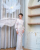 One of our favourites this year, we just love every element embedded on this piece. She’s distinctly the star of the show this year and we are just so excited to see this out there. Encapsulating the essence of ethereal beauty, this piece speaks for itself. What’s a Temujanji piece without our embroidered design? Also spot our hand beaded beadwork too! If that’s not extra enough, we even place a shawl for you to style and move around with to get that perfect Raya shot. If you paid attention, you will notice that our kurungs have different necklines too! Asymmetrical look for this one – may come across as intimidating, but the beautiful hue of blue and cream print accentuate the softness we want to present to you. Undoubtedly, this kurung is the perfect embodiment of ethereal beauty. What do you think?